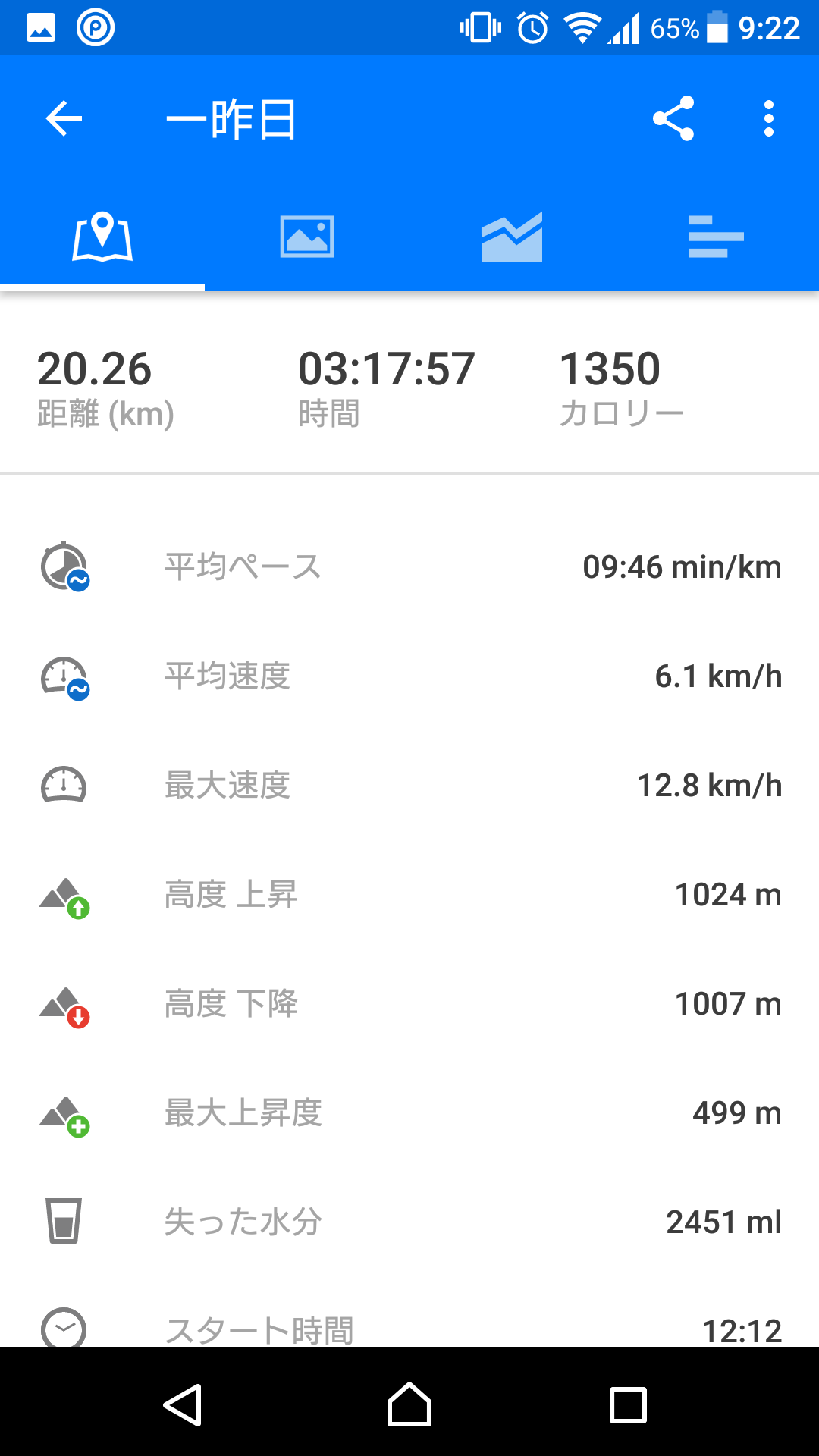 土曜日の距離は20.70km(累積標高差+1,057m)